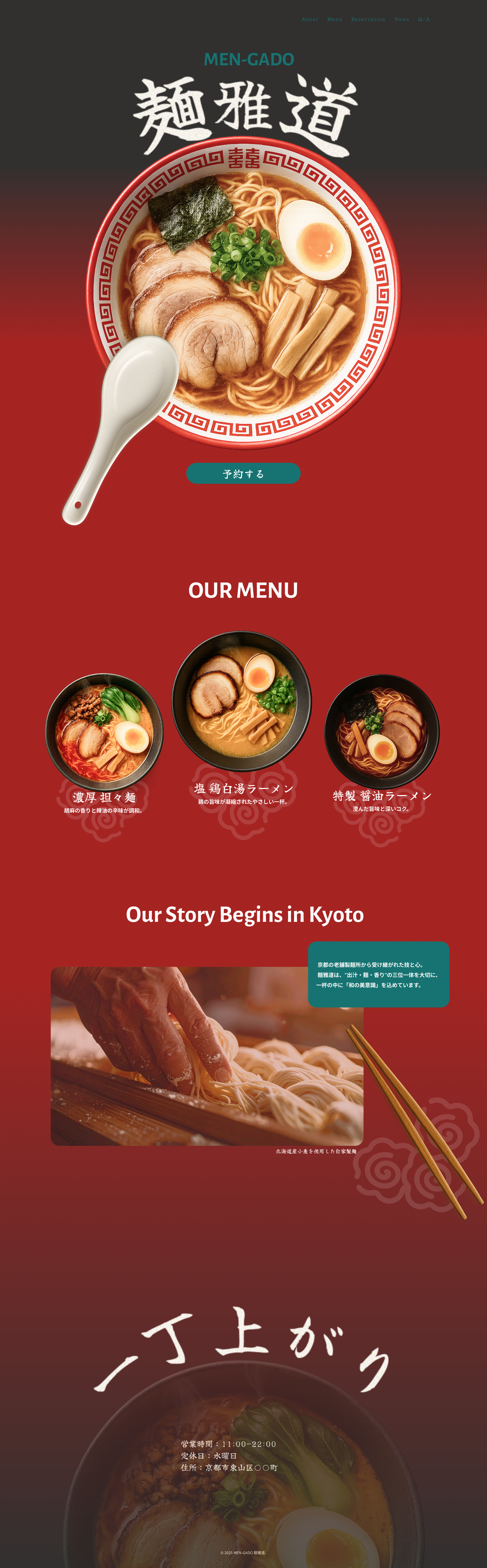 伝統と現代が交わる“和モダン”なラーメンブランドのLPデザイン。